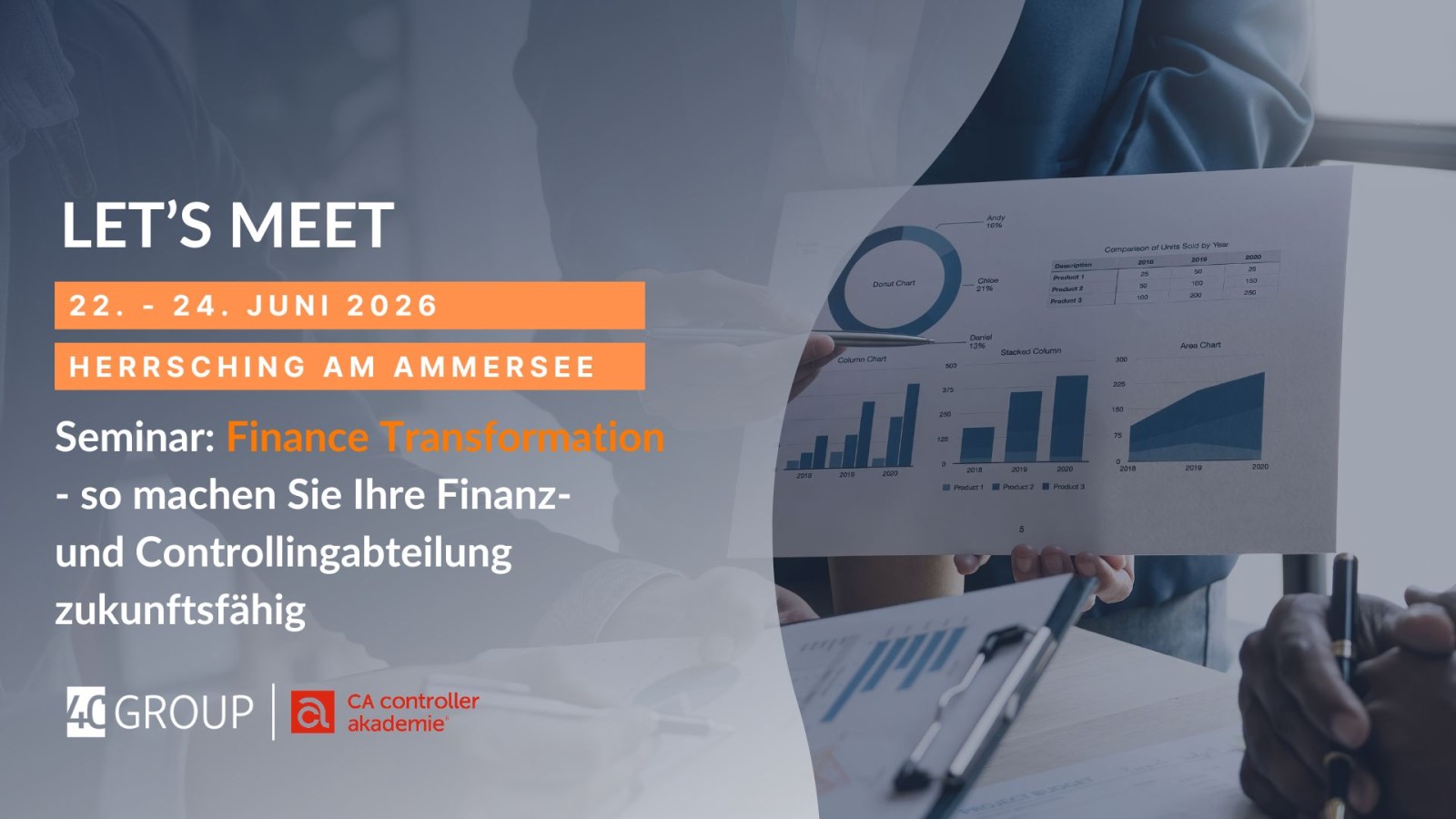 Ein Seminar der Controller Akademie in Kooperation mit der 4C GROUP. Lernen Sie, wie Sie Ihre Finanz- und Controllingorganisation zukunftsfähig aufstellen und aktiv im Wandel gestalten. Im Fokus steht der Weg vom klassischen Berichtswesen hin zum Business Partner mit echtem Mehrwert. Digitalisierung, neue Geschäftsmodelle und steigender Druck erfordern strategische und strukturelle Antworten. Profitieren Sie von der kombinierten Expertise zweier starker Partner – von der Einzelgesellschaft bis zur Konzernsteuerung, in Organisation, Prozessen und IT.