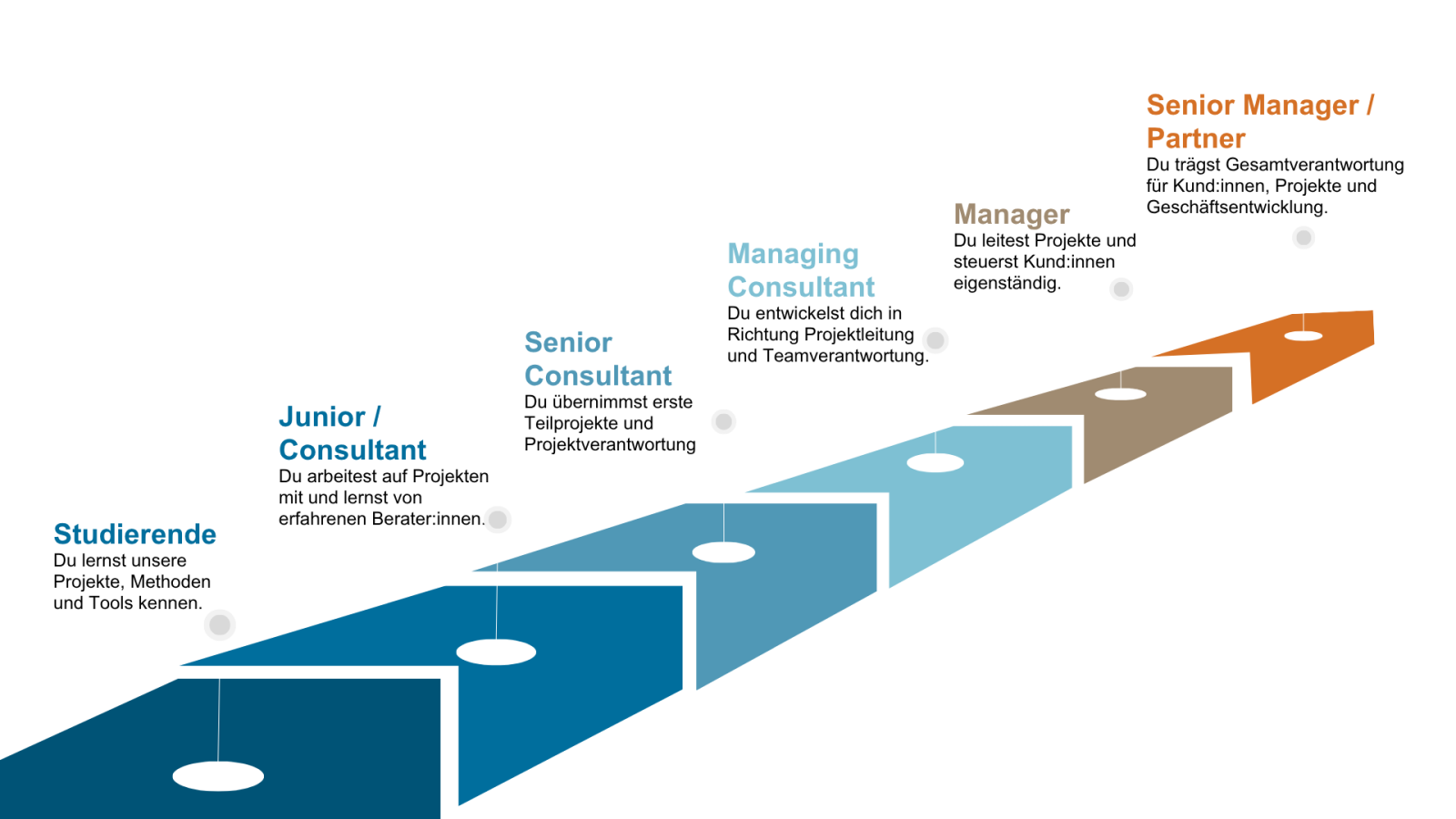 - Frühe Verantwortung & Learning on the Job in vielfältigen Projekten und Branchen